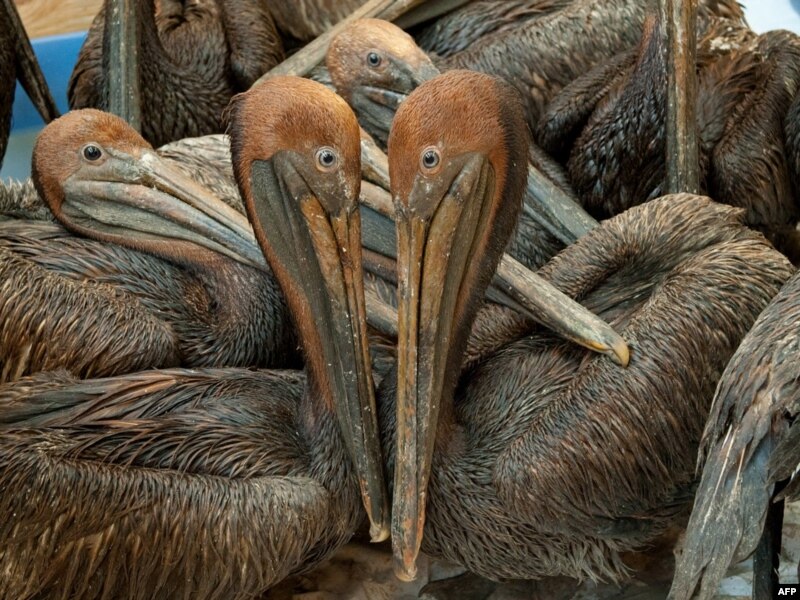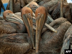 Луизиана штатында нефтькә буялган пеликаннар