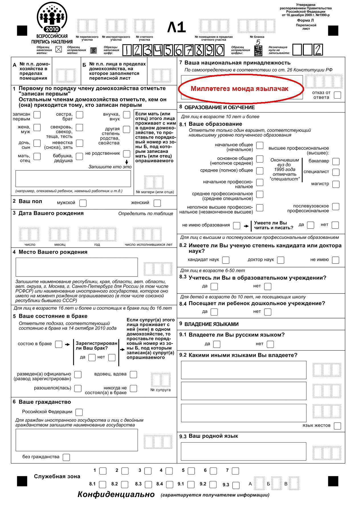 Һәм тагын бер сүз – урыс халкы “жалкы” да әле: барысы да бер төрле генә – РУССКИЙ дип язылачактыр бит алар. Чөнки бу халыкны татар яки чуаш кына ИСЕМ белән атый бит безнең якларда: урыс яки вырыс диләр. Ә урыслар үзләрен ‘имя прилагательное’ белән генә атыйлар. Тик шунысын аңлатучы очраганы юк әле: бу ‘прилагательное’ нәрсәгә ‘прилагается’ икән соң?