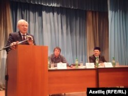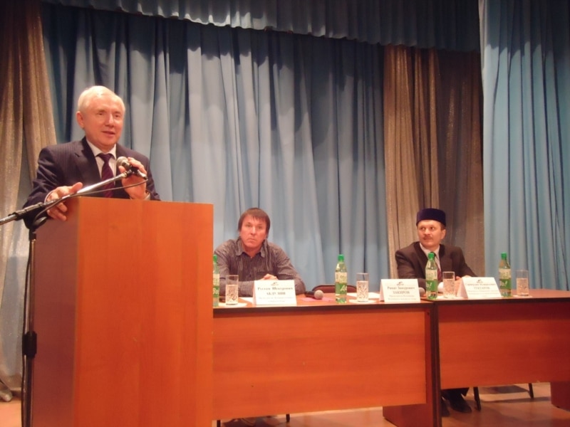 Ринат Закиров җирле татарлар алдында чыгыш ясый