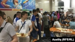 Кичке аш Универсиада авылында оештырылды, 900ләп кеше өч озын чиратка тезелеп басты. Пешекчеләр өлгерми. Ризык өләшүче хатыннар: "Компот алучыларга - чәй юк" дип торды. Татарларда дилемма - компотын да эчәсе килә, чөнки эссе, әмма чәйсез дә тамак туймый.