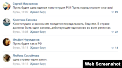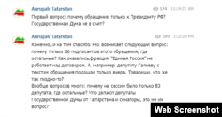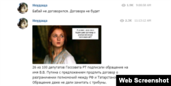 ... каршы чыгучылар да бар. Мисал өчен, Вконтактеда 350ләп мең язылучысы булган "Набережные Челны Онлайн" төркемендә Татарстан депутатларының Путинга мөрәҗәгате яңалыгы астында нигездә негатив комментлар языла бара (барлык фикерләрне биредә укып була).