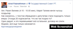 Ilnur Tatar исемле Facebook кулланучысы исә Мәскәүдә югары вазифалар биләгән депутатлар нишли дигән сорау куя. Иренмичә, ул мондый кешеләрнең исемлеген дә төзегән.