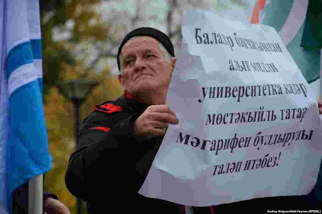 Күтәрелгән плакатларда "Татарстан мәктәпләрендә татар телен дәүләт теле буларак укытуны теләп итәбез", "Нигә 1552 елда шаһит киткән татар каһарманнарына һәйкәл куелмаган?", "Русия, үз конституцияңе үтә!" кебек шигарләр язылган.