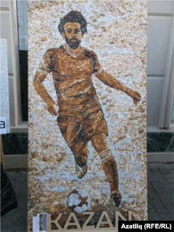 Казанның Бауман урамында мозаика рәвешендә Мөхәммәд Салах сурәте төшерелгән таш күреп була.