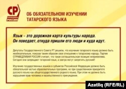 Фирканең республика бүлеге башлыгы Хафиз Миргалимов исә Азатлык хәбәрчесенә, киресенчә, татар теленә зур урын бирелүен әйтте. Алар сайлау алды платформасын, өндәү кәгазьләрен, газетын татарчага тәрҗемә иткән. Моны алар Актаныш, Мөслим, Сарман, Арча кебек татар телле районнарда кулланачак.