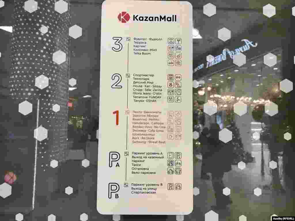 Казанның Павлюхин урамында шәһәрдәге иң зур сәүдә һәм күңел ачу үзәге төзелде. Kazan mall дип аталга үзәктә Азатлык хәбәрчесе "Рәхим итегез!", "Бәдрәф", "Сезне көтеп калабыз!"дан башка бер татар язуы да күрмәде. Инглиз телендә дә язулар шактый, ә менә Татарстандагы ике дәүләт теленең берсе булган татар теле биредә кулланылмый.