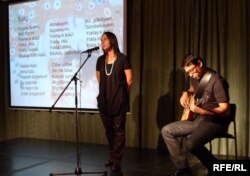 Рушан Насретдин "Бәллү" җырын җырлый. Гитарада Раиф Хәйрулла уйный.