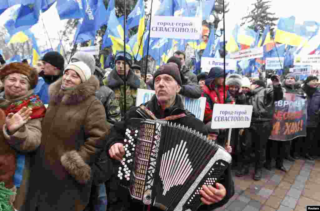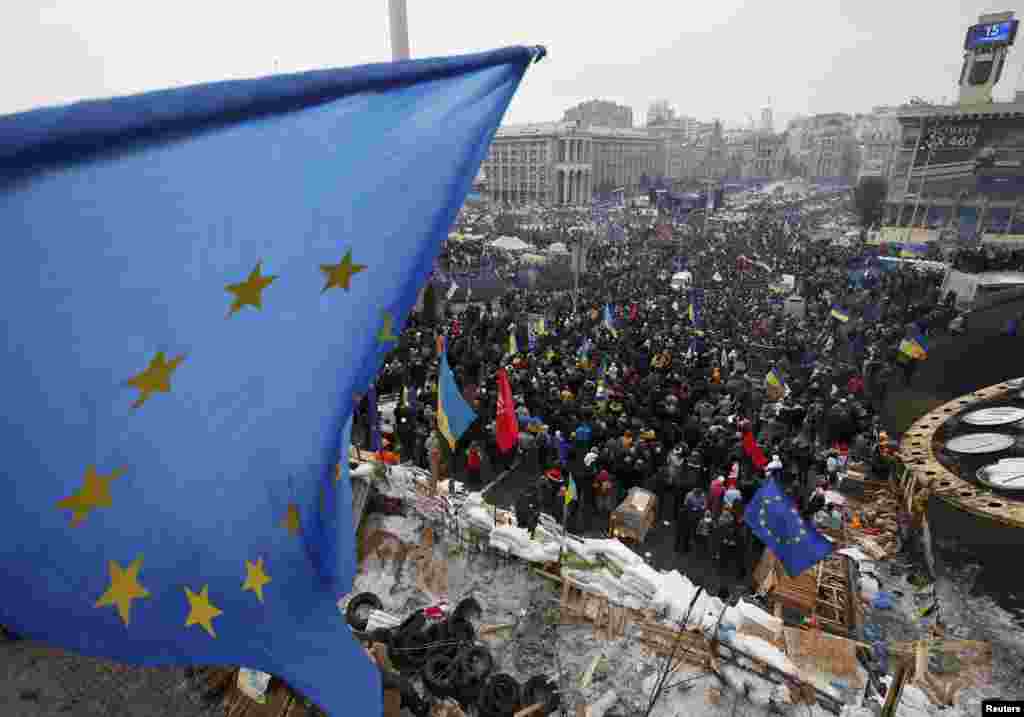 Якшәмбедә Киевта Бәйсезлек мәйданында хөкүмәткә каршы җыенда 150дән алып 200 меңгә кадәр кеше катнашты. Хөкүмәт тарафдарлары исә янәшәдә үз җыенын үткәрде.